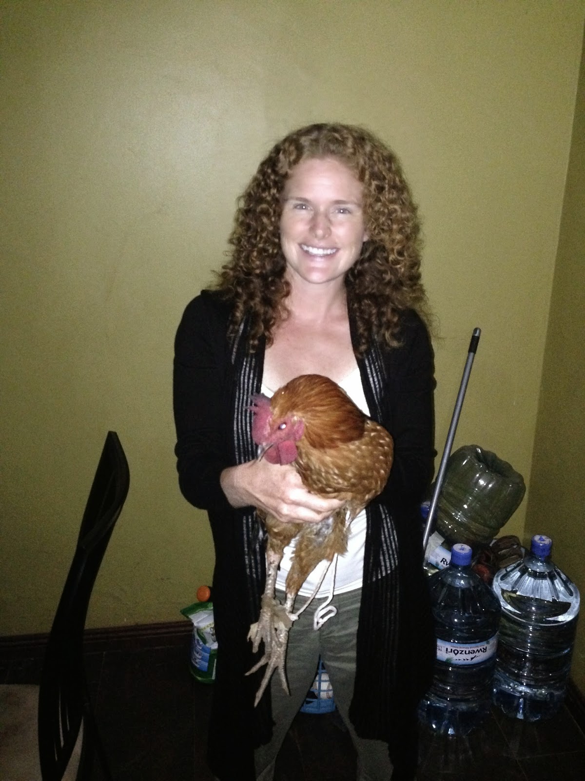Our friend Jimmy came from his village for the weekend to visit our family and brought us a live ROOSTER. Typically this gift is one that you EAT. But he was kind and seemed very happy for us to do whatever we wanted with the chicken. After he left I found out that this rooster was not very old. So I began rationalizing if we are going to eat the rooster–or someone is–we should fatten him up first. Or maybe we could give him away to someone who is looking to mate their hen and have baby chicks running around their compound? This could be a great need fulfilled; it was just important to find the right recipient! I continued to find reason after reason to keep “Lucky” around. Yes, I named him…and his names tells all. We are NOT eating this rooster…he is going to likely live out his long happy lifespan of 15 years with someone in Uganda. Yep, I’ve completely lost it.